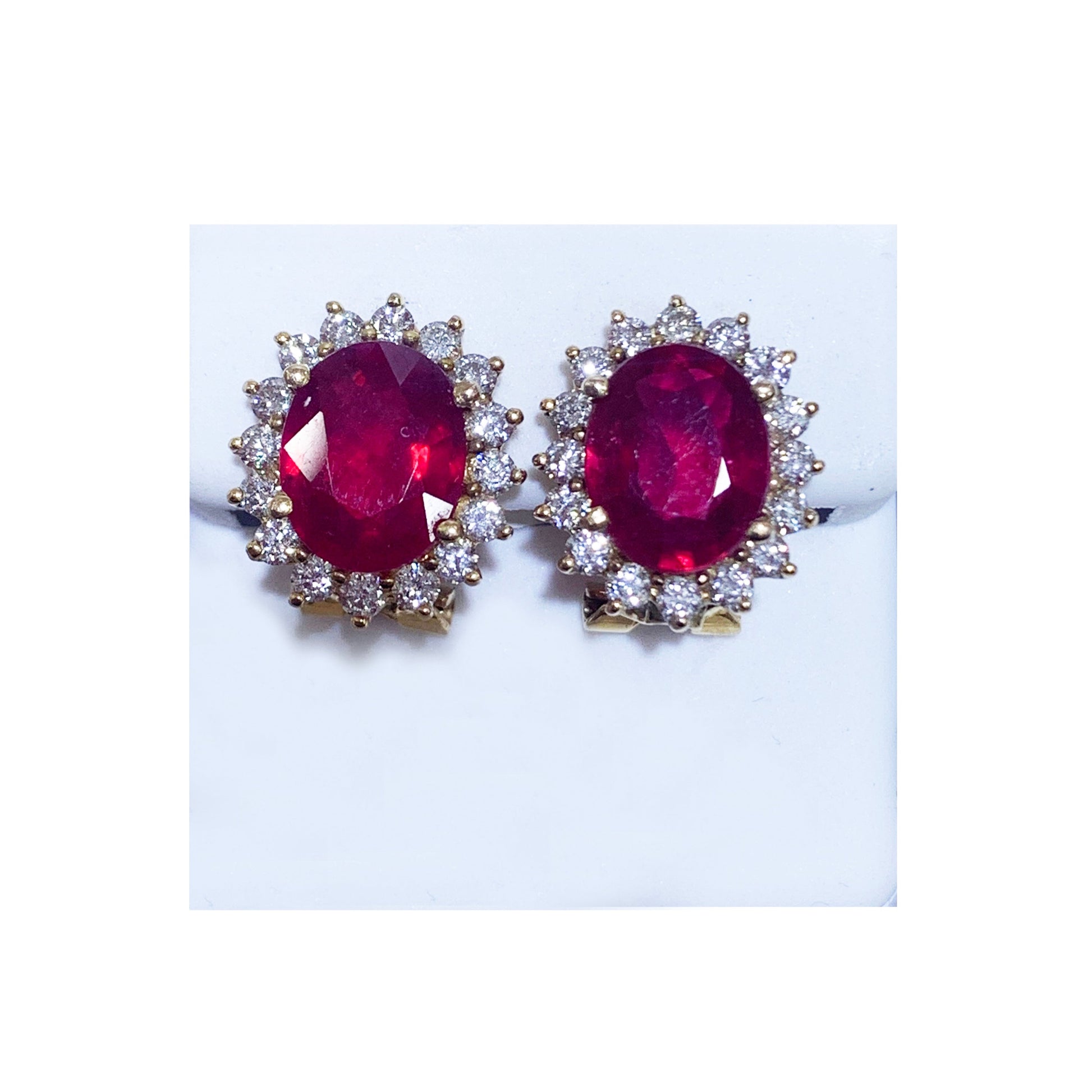 14k Yellow Gold Ruby Diamond Earrings